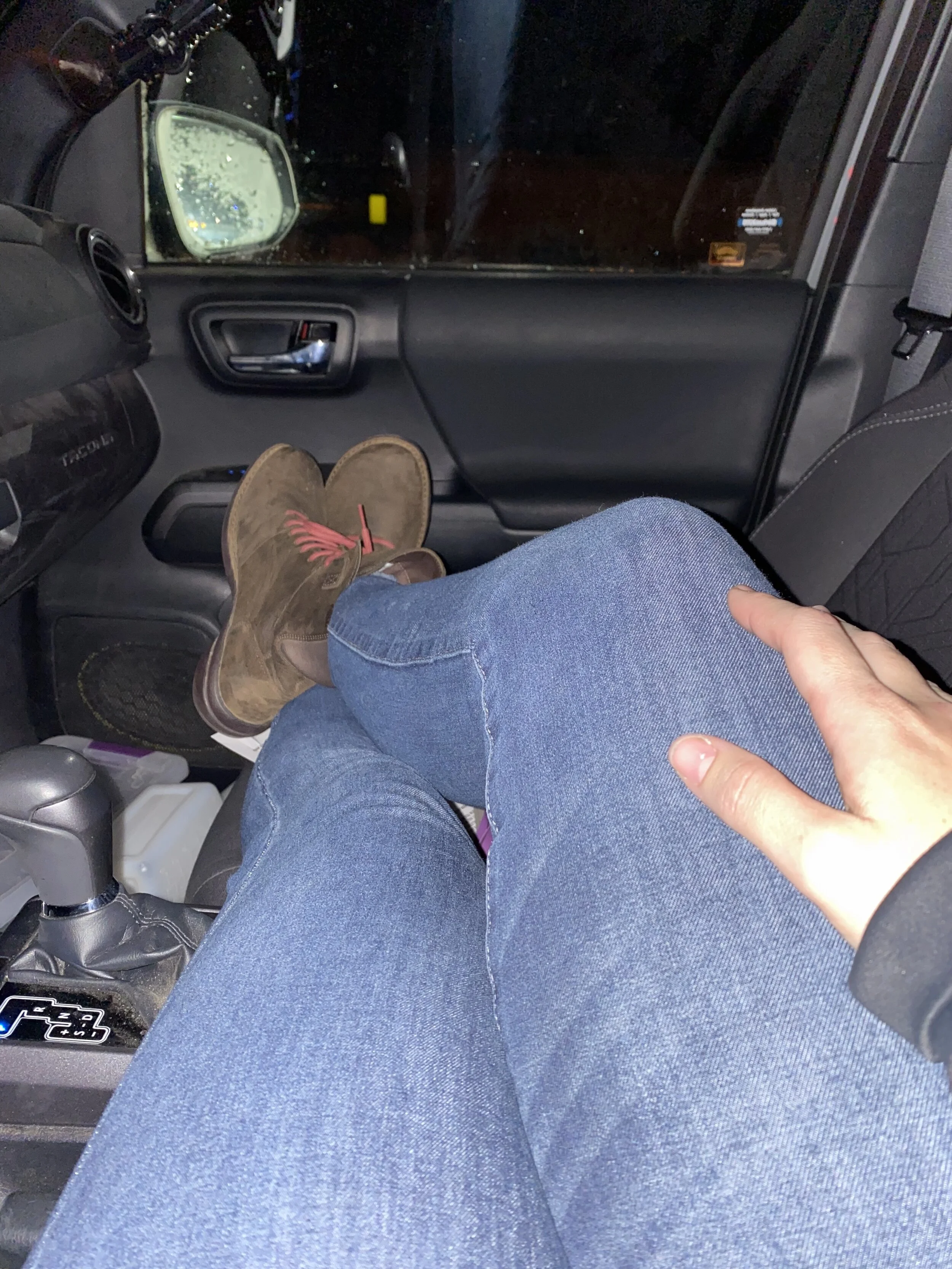 I’m startled awake in the backseat of my truck. A drool puddle has already formed on the beanie I was using as a pillow.